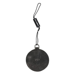 Dolce & Gabbana Green Calfskin Leather Round Logo Hand Mirror Holder