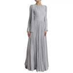 Dolce & Gabbana Light Grey Polyester Pleated Long Maxi Dress