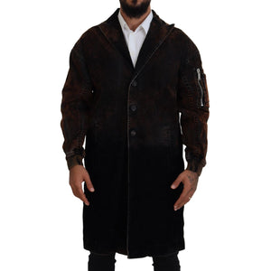 Dsquared² Brown Full Button Men Long Coat Cotton Jacket