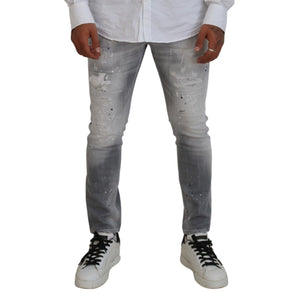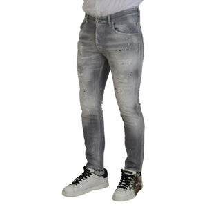 Dsquared² Gray Washed Cotton Slim Fit Casual Men Denim Jeans