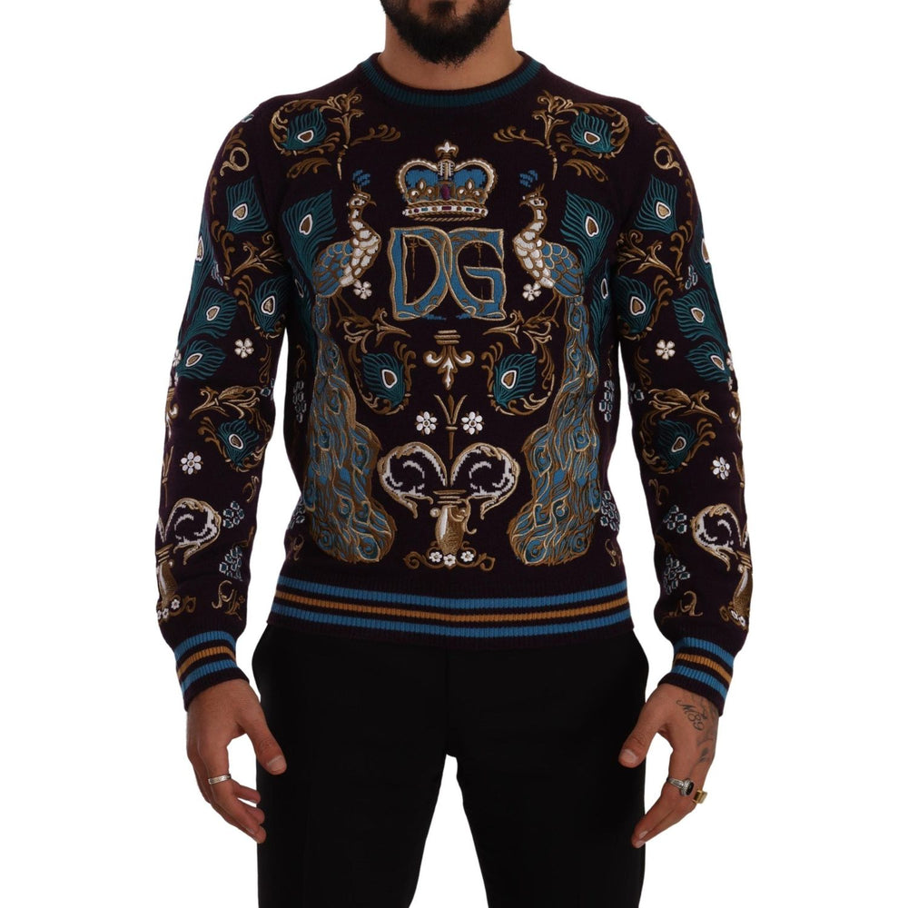 Dolce & Gabbana Bordeaux Cashmere DG Crown Embroidered Sweater