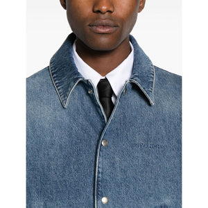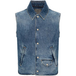 indigo blue denim embroidered logo at the chest classic collar front press-stud fastening sleeveless two side zip-fastening pockets front flap pocket straight hem full lining Denim cotton vest Size and Fit - This piece fits true to size. We recommend you get your regular size. Model is 1,84m / 6ft 1in wearing size M