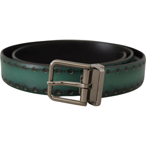 Dolce & Gabbana Green Giotto Leather Silver Metal Buckle Belt