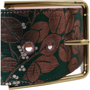 • Dolce & Gabbana Multicolor Floral Jacquard Lurex Gold Buckle Belt