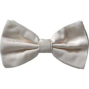 Dolce & Gabbana Off White Silk Adjustable Neck Men Bow Tie
