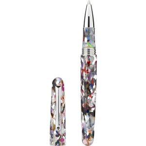 PENNE MONTEGRAPPA MOD. ISEERRIK rollerball pen with a vibrant, multicolored design, shown with cap beside pen.