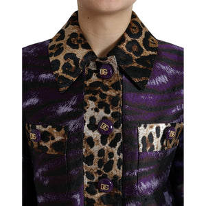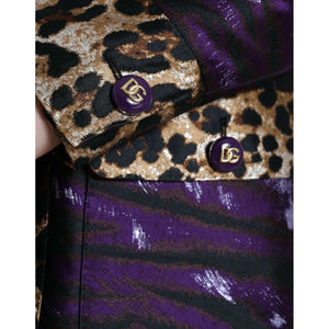 Dolce & Gabbana Purple Lamé Jacquard Tiger Print Coat Jacket