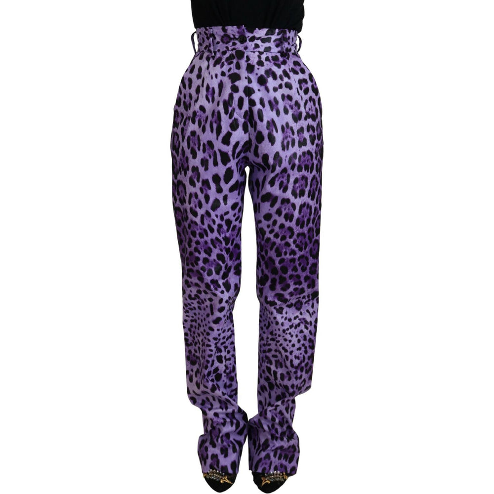 Dolce & Gabbana Purple Leopard Print High Waist Pants
