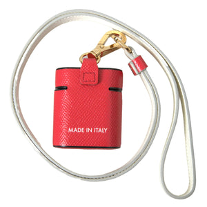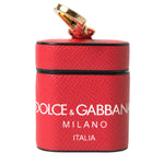 Dolce & Gabbana Red Leather Gold Tone Metal Logo Print Strap Airpods Case