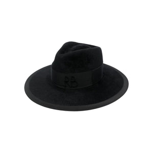 logo-embroidered fedora hat from RUSLAN BAGINSKIY featuring black, cotton, wool felt, embroidered logo to the front and wide brim. Fedora hat Size and Fit - BRIM: 9.0 Centimetres. CIRCUMFERENCE: 54.0 Centimetres.