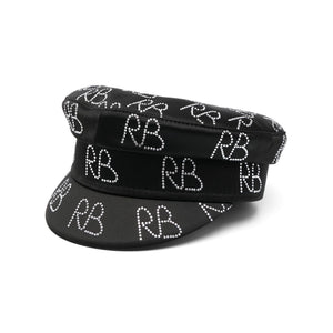 crystal-embellished baker boy hat from RUSLAN BAGINSKIY featuring black, cotton, crystal embellishment, all-over logo print, curved peak and slip-on style. Baker Boy logo strass hat Size and Fit - BRIM: 5.0 Centimetres. CIRCUMFERENCE: 60.0 Centimetres.