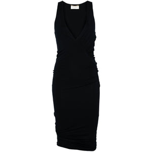 black stretch-design ruched detailing V-neck sleeveless above-knee length V-necked sleelvess dress Size and Fit - This piece fits true to size. We recommend you get your regular size. Model is 1,75m / 5ft 8in wearing size 36 (FR)