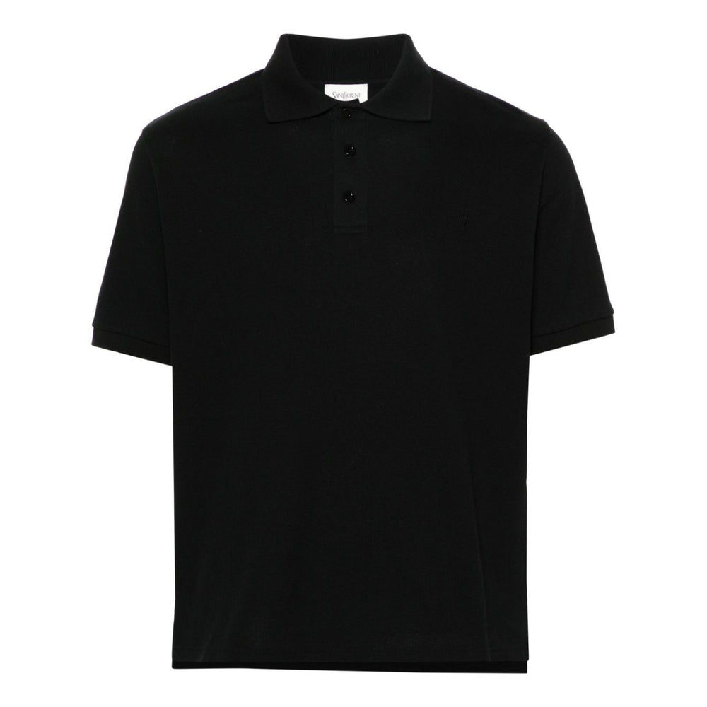 black cotton blend piqué weave embroidered logo at the chest signature Cassandre logo plaque polo collar front button placket short sleeves ribbed cuffs short side slits straight hem We've partnered with Good On You — an independent agency that rates how brands perform in relation to their impact on the planet, people and animals, with a multi-criteria rating simplified to a five points scale. In order to be awarded our conscious label, larger brands need to score a minimum of four out of five ('Good'), while smaller brands must score at least three out of five ('It's A Start'). This item comes from a brand rated three out of five ('It's A Start') by Good on You at the time it was added on FARFETCH. Please note, this is a brand-level rating and does not guarantee that this product is made with conscious materials. Learn more about what makes a product Conscious on our Conscious Criteria page Piquet cotton polo shirt Size and Fit - This piece fits true to size. We recommend you get your regular size. Model is 1,84m / 6ft 1in wearing size M