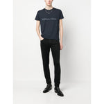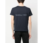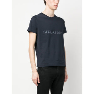 Reverse logo-print cotton T-shirt from SAINT LAURENT featuring navy blue, cotton, logo print at the chest, logo print to the rear, crew neck, short sleeves and straight hem. Logo cotton t-shirt Size and Fit - This piece fits true to size. We recommend you get your regular size. Model is 1,84m / 6ft 1in wearing size M