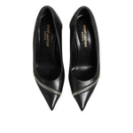 Saint Laurent White Black Leather Pointed Toe Heels Shoes
