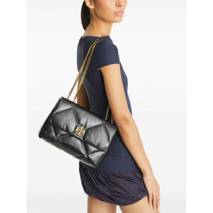 black nappa leather diamond quilting signature Double T motif sliding chain-link shoulder strap gold-tone hardware foldover top with magnetic fastening partitioned compartment internal zip-fastening pocket Kira Diamond leather shoulder bag Size and Fit - Width 10,83 in / 27,5 cm Height 7,48 in / 19 cm Depth 3,15 in / 8 cm Strap 23,23 in / 59 cm