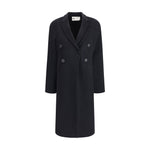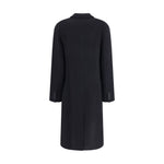 This classic Wool Coat features decorative horn buttons inspired by double-breasted styling. It has a central closure with fabric-covered buttons, horn details on the front and cuffs, a welt chest pocket, and side pockets. An timeless and refined piece, perfect for transitional seasons