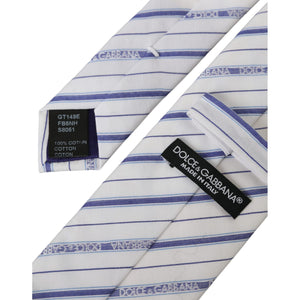 Dolce & Gabbana White Blue Stripes Silk Adjustable Tie