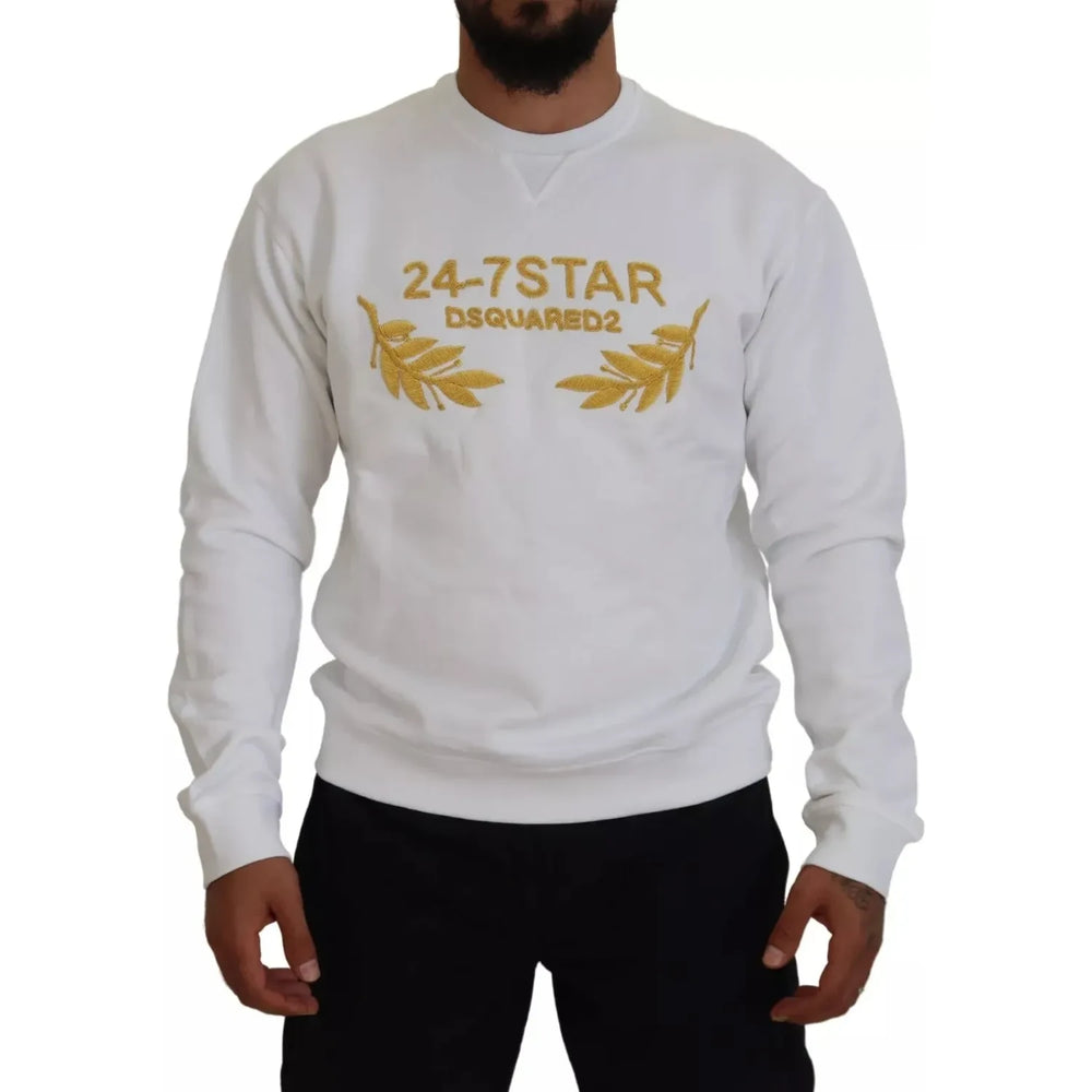 Dsquared² White Embroidered Crewneck Sweatshirt Sweater